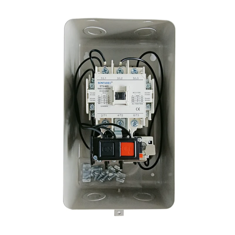थ्री-फेज मॅग्नेटिक मोटर स्टार्टरचे कार्यरत तत्त्व इलेक्ट्रोमॅग्नेटिक इंडक्शनच्या तत्त्वावर आधारित आहे. जेव्हा चुंबकीय कॉन्टॅक्टर कॉइलला उत्साही होते, तेव्हा ते एक चुंबकीय क्षेत्र तयार करते, जे आर्मेचरला कार्य करण्यास आणि संपर्क बंद करण्यासाठी आकर्षित करते, ज्यामुळे मोटरला वीजपुरवठा चालू होतो. जेव्हा मोटर थांबविणे आवश्यक असते, तेव्हा चुंबकीय कॉन्टॅक्टर कॉइलला वीजपुरवठा कापला जातो, चुंबकीय क्षेत्र अदृश्य होते, आर्मेचर रीसेट होते, संपर्क तुटतात आणि मोटर चालू आहे. त्याच वेळी, ओव्हरलोड रिले मोटरच्या चालू असलेल्या प्रवाहाचे परीक्षण करेल, जेव्हा वर्तमान सेट मूल्यापेक्षा जास्त असेल तेव्हा ते ओव्हरलोड संरक्षणास चालना देईल आणि सर्किट कापेल.