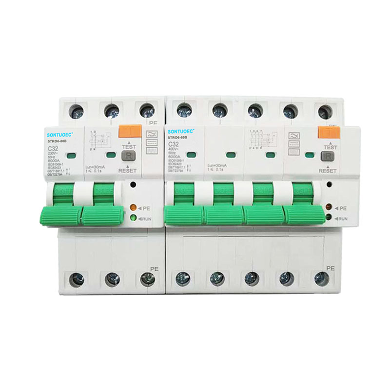 ओव्हरलोड संरक्षणः जेव्हा सर्किटमधील चालू एसटीओ 6-80 बी आरसीबीओचे रेट केलेले मूल्य ओलांडते, तेव्हा सर्किट आणि उपकरणे जास्त तापण्यापासून रोखण्यासाठी ते स्वयंचलितपणे एका कालावधीत सर्किट कापून टाकेल, ज्यामुळे आग आणि नुकसान टाळता येईल.