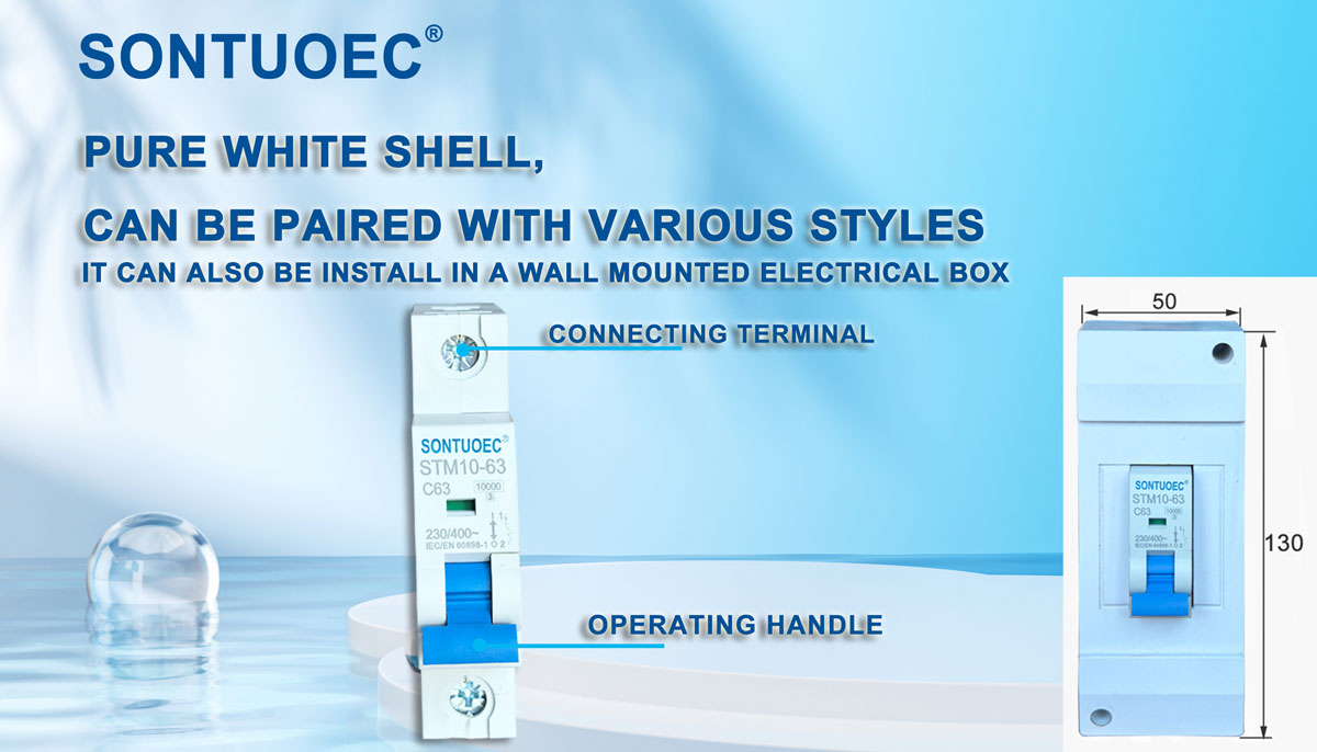 SONTUOEC हे विविध लहान विद्युत उपकरणांच्या उत्पादनात विशेष असलेल्या चिनी पुरवठादार/उत्पादकांपैकी एक आहे STM10-63 सिरीज हाय ब्रेकिंग मिनिएचर सर्किट ब्रेकरमध्ये संरचना प्रगत, कार्यक्षमतेची विश्वासार्ह, ब्रेकिंग क्षमता उच्च, देखावा मोहक आणि त्याचे शेल आणि भाग प्रभाव प्रतिरोधक, मजबूत फ्लेम-आफ्रिकन वैशिष्ट्यांसह सामग्रीचे बनलेले आहेत. हे 50 किंवा 60 वारंवारता, Ue 400V आणि त्याहून कमी, Ui 63A आणि त्याहून कमी क्षमतेच्या प्रणालीसाठी योग्य आहे. हे प्रामुख्याने कार्यालयीन इमारत, निवासस्थान, प्रकाश, वीज वितरण आणि ओव्हरलोड आणि उपकरणांच्या शॉर्ट सर्किट संरक्षणासाठी लागू केले जाते. सामान्यतः, हे पॉवर सिस्टमचे वारंवार न होणारे हस्तांतरण म्हणून देखील वापरले जाऊ शकते. हे IEC60898.1 आणि GB10963.1 मानकांशी सुसंगत आहे
